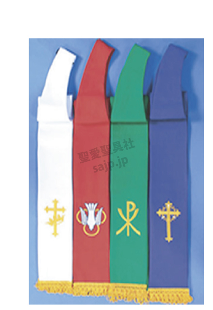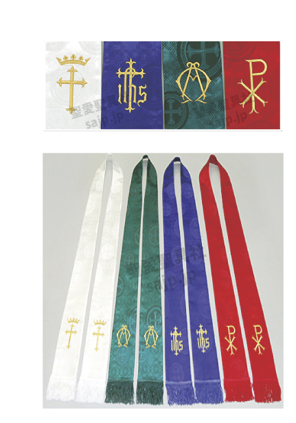 ![]() G-01-036 価格:お問い合わせ 生地:ポリエステル・ ウール混紡 ゴールドの十字架の 刺繍と ゴールドの線が 3本ずつ入っています。 |