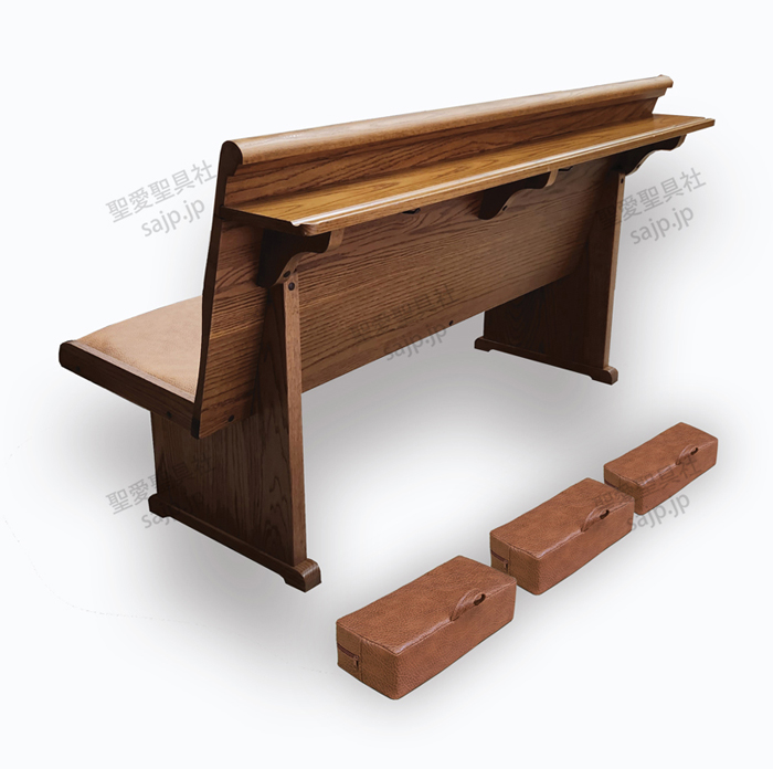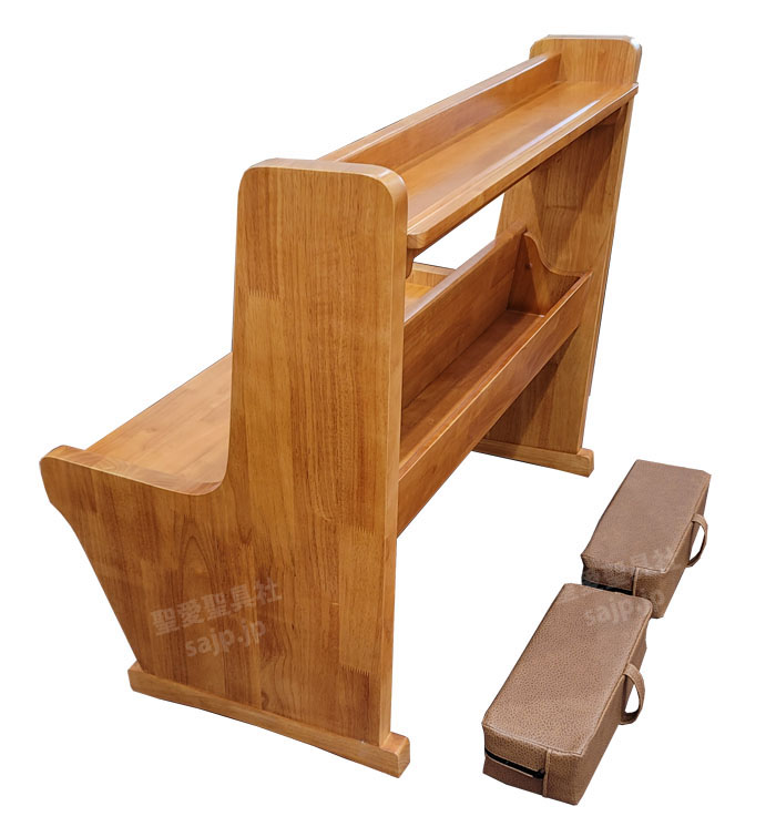 お祈りの時はクッションを出して使い、使わない時には長椅子のポケットに収納!(長椅子のモデルP-700)