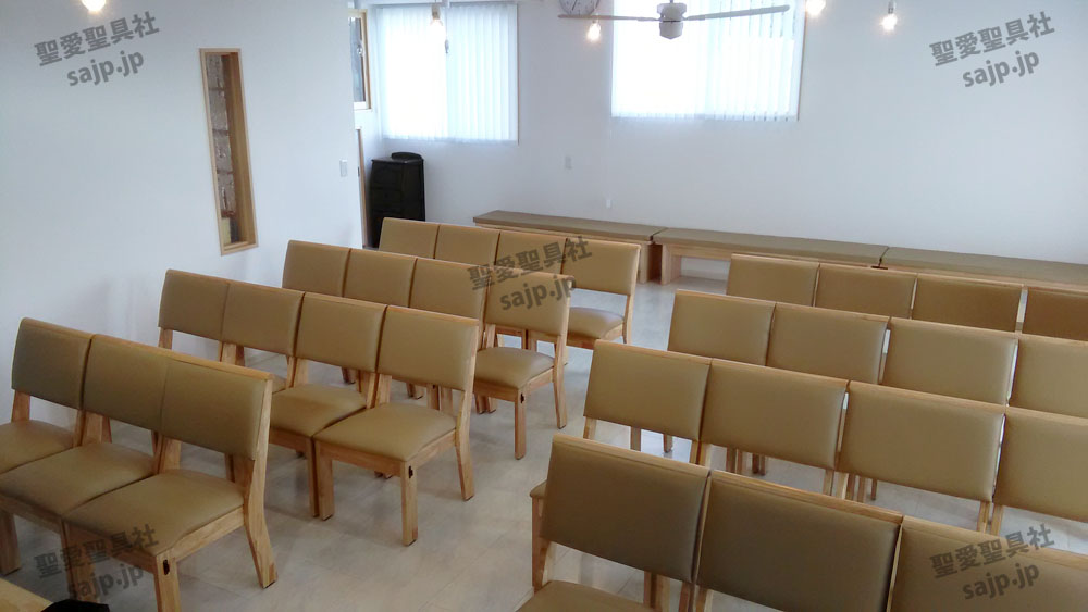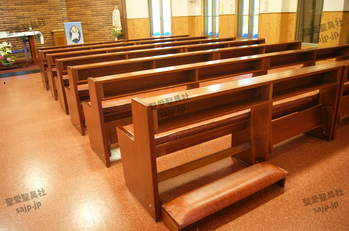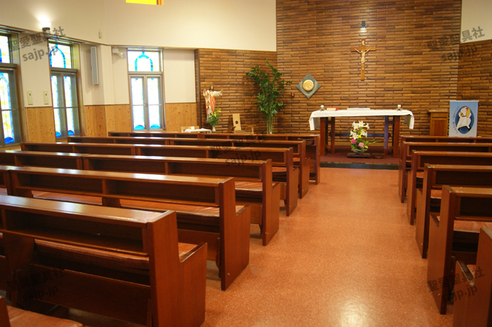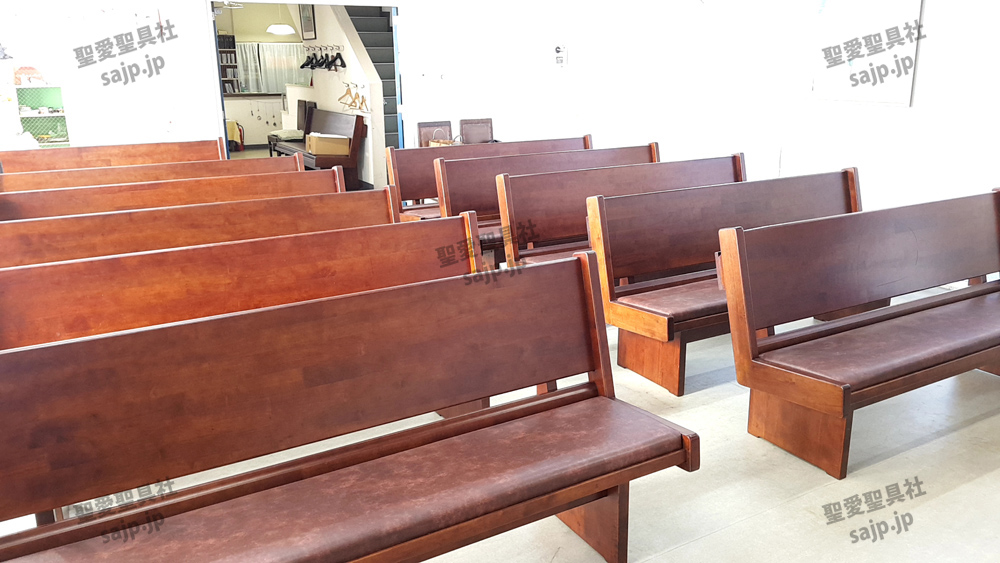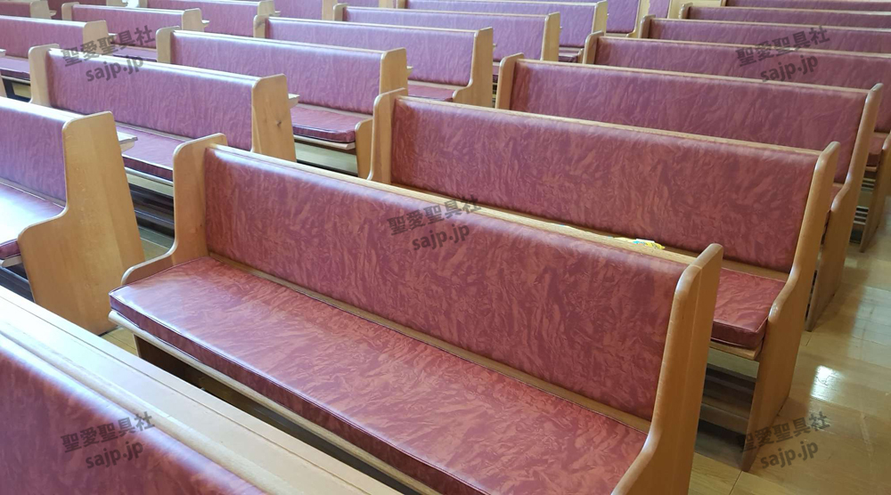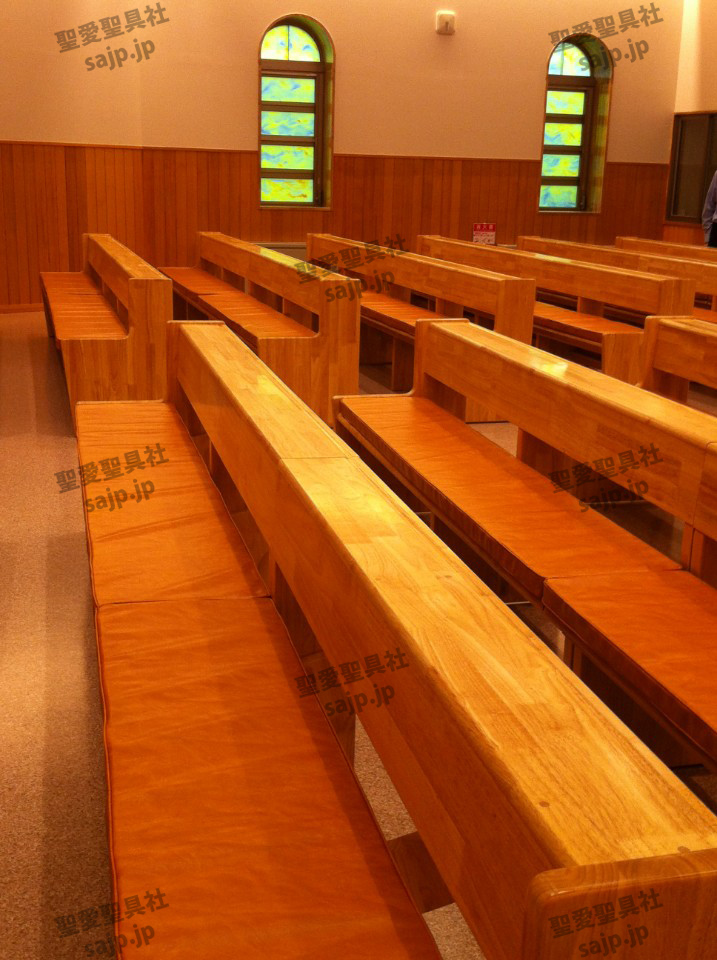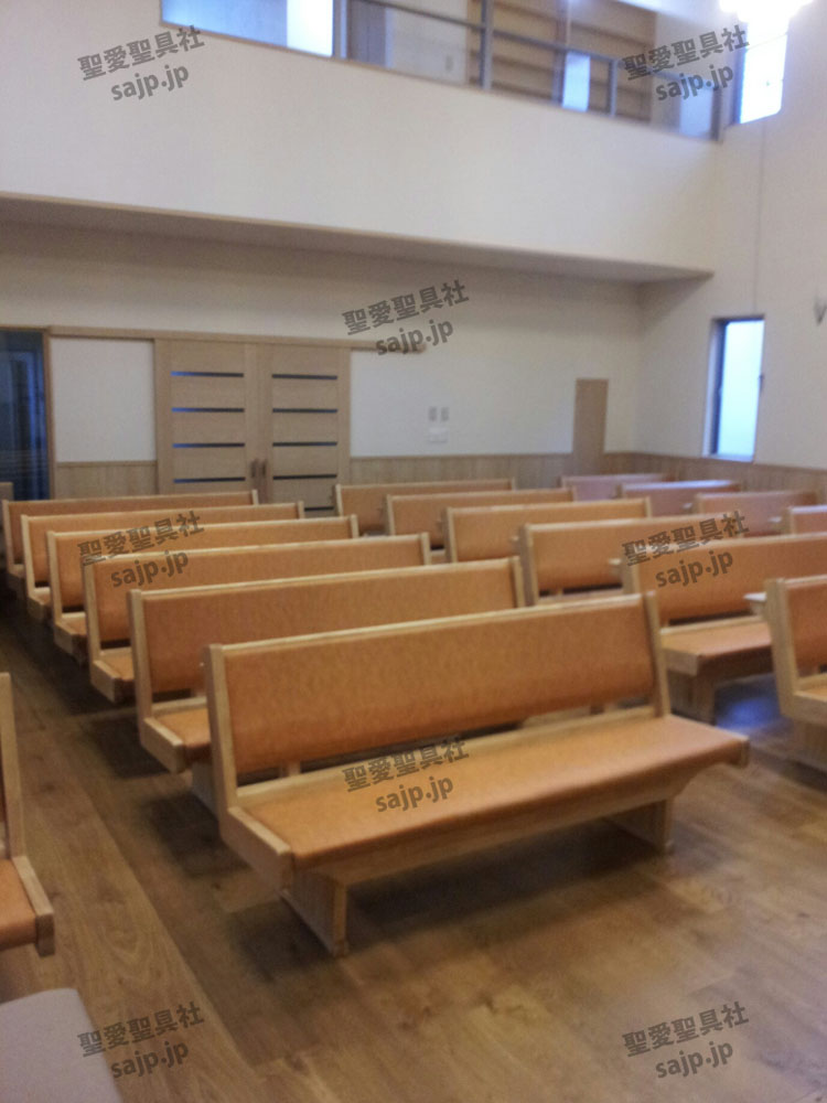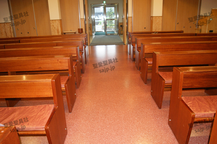 岐阜県 <カトリック大垣教会> モデル:長椅子 特注、レザークッション |