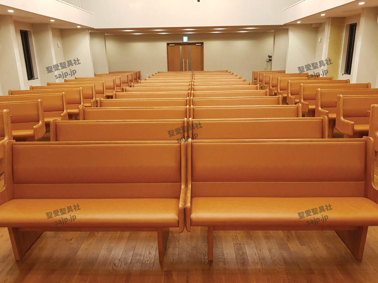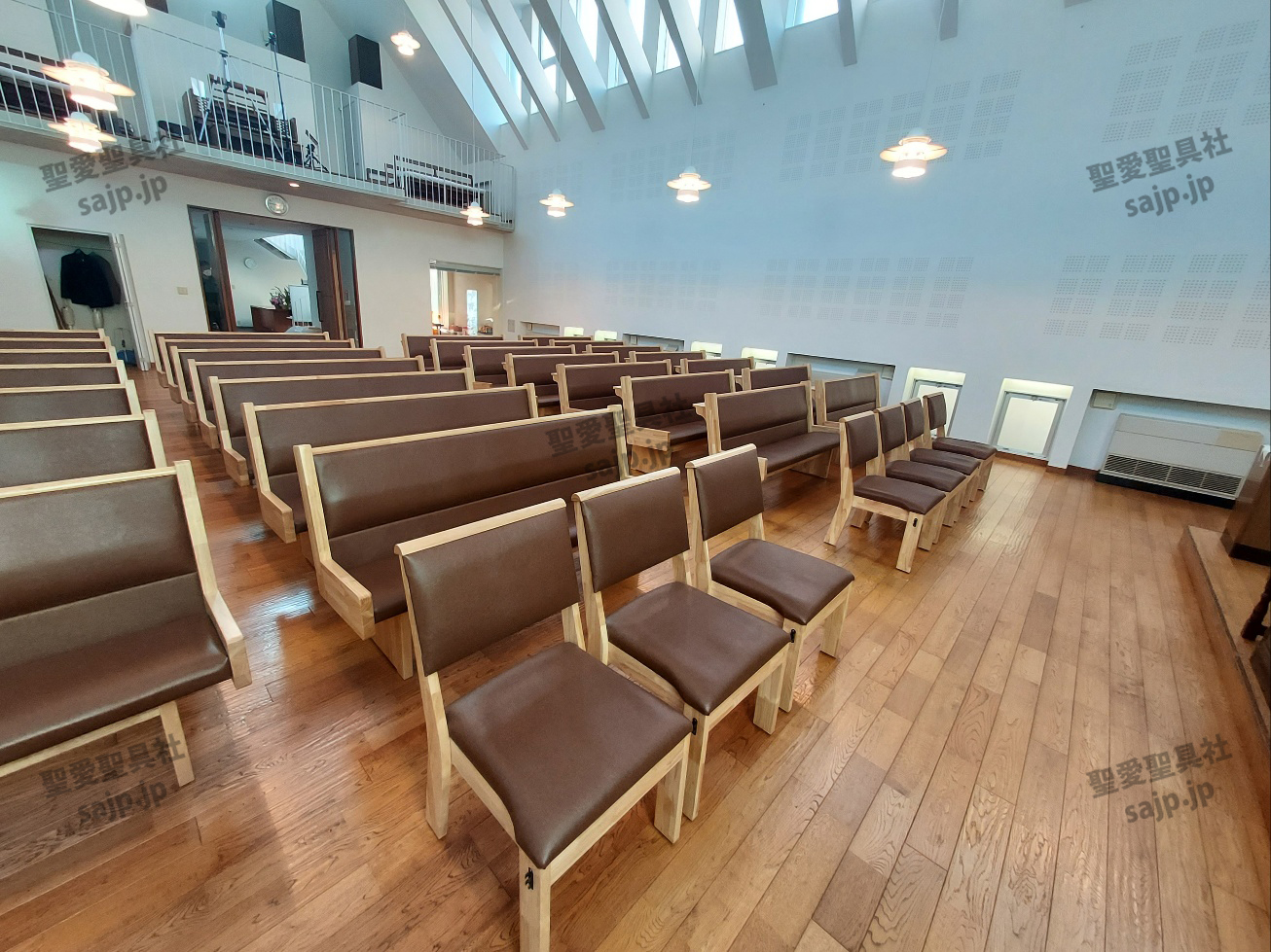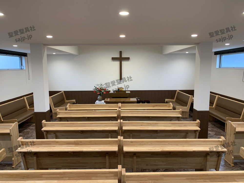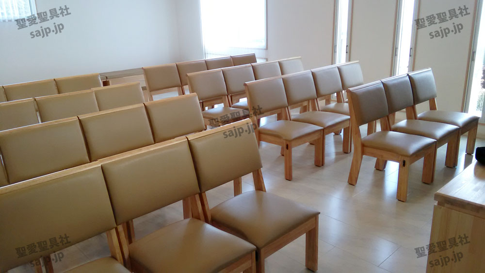 岐阜県 <カトリック大垣教会> モデル:長椅子 特注、レザークッション |