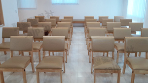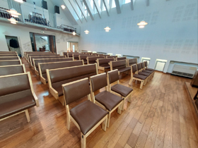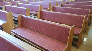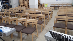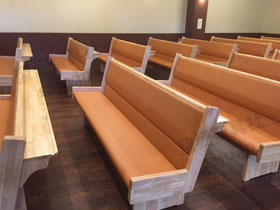 埼玉県 <東大宮福音自由教会> モデル:長椅子の座布団、背もたれのクッション貼り付け |