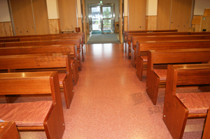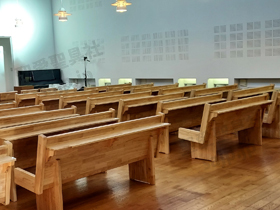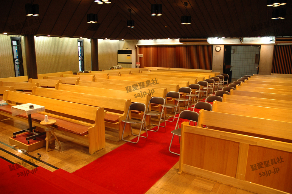 東京都 <カトリック高円寺教会> モデル :P-860(長椅子特注モデル)、PS-302、ついたて特注,