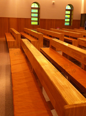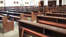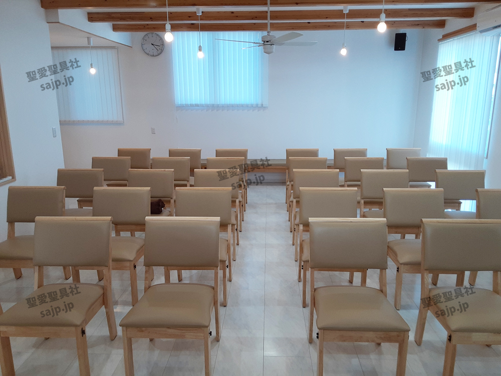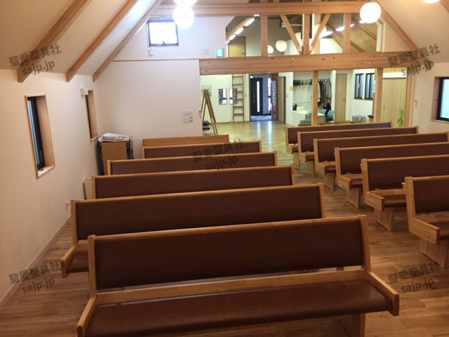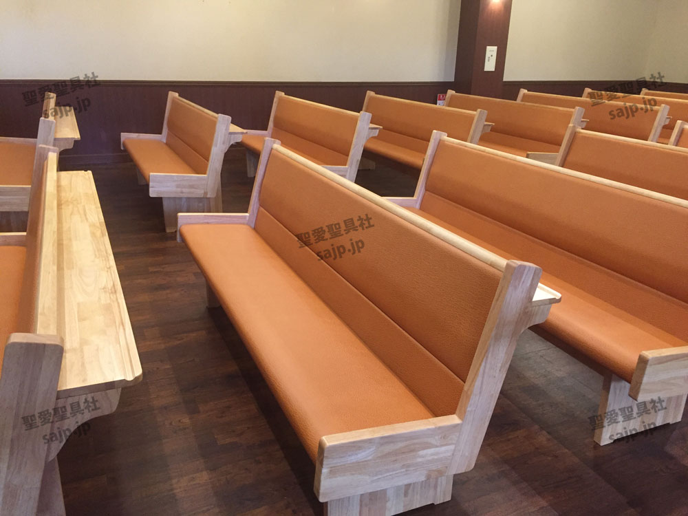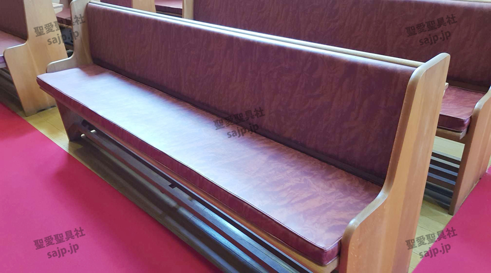 岐阜県 <各務原カトリック教会> モデル:長椅子 特注、レザークッション |